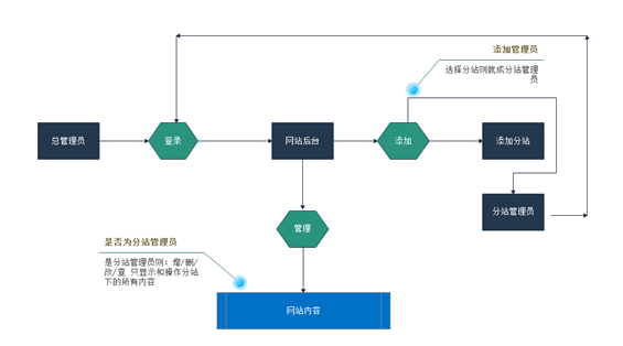 主站基于区域特点个性化设置,子站基于模版标准化实施。