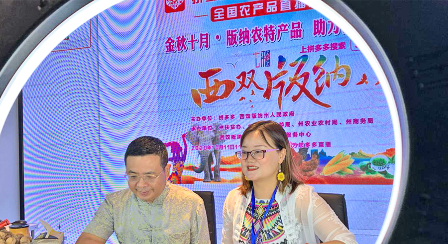 2020年10月11日,由拼多多、西双版纳傣族自治州人民政府、州扶贫办、州文化和旅游局、州农村农业局、州商务局、州电子商务公共服务中心联合举办的助农直播活动在州电子商务公共服务中心举行。