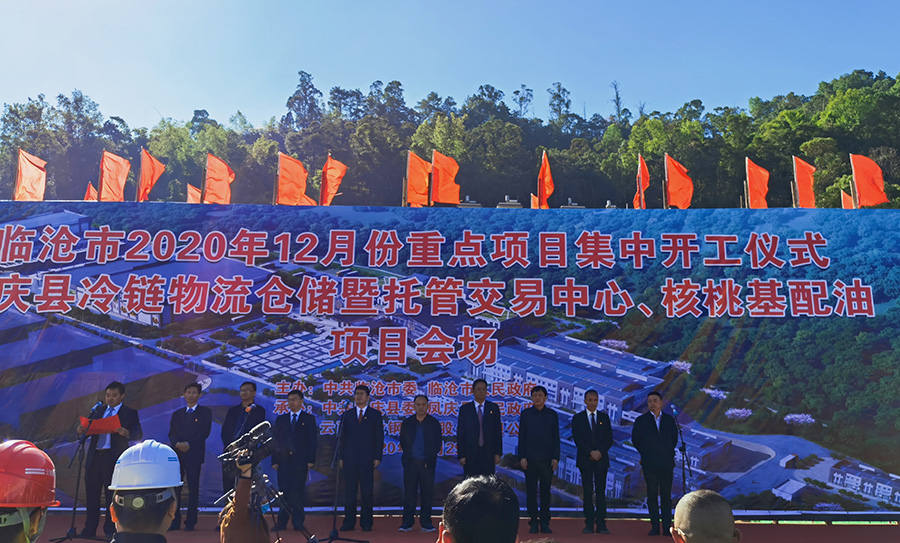 临沧市2020年12月份重点项目集中开工仪式-凤庆县冷链物流仓储暨托管交易中心、乡村振兴“一县一业”核桃基配油项目开工仪式昨日举行。