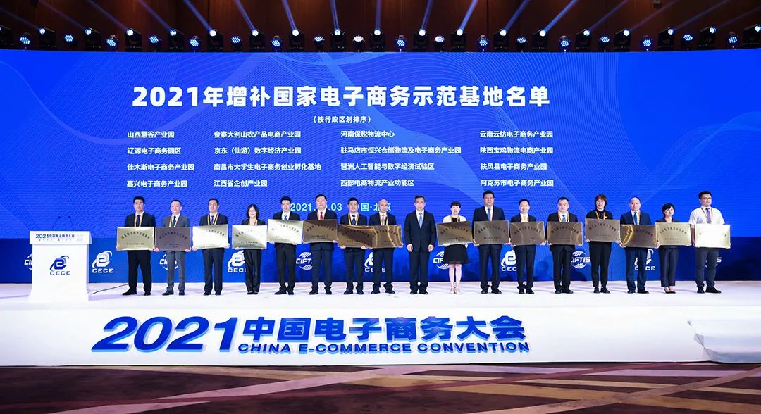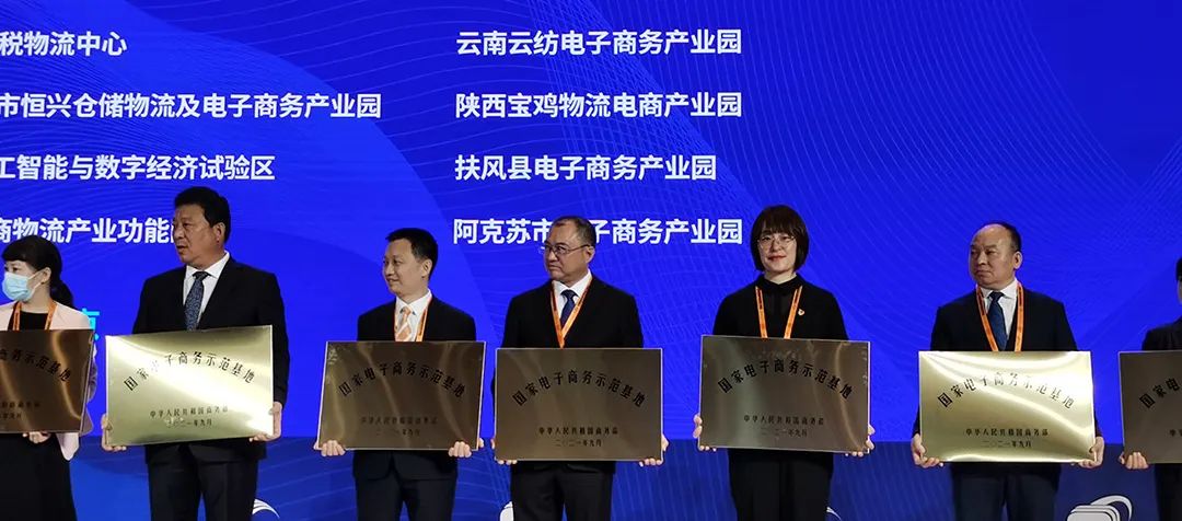 大会现场据国家商务部消息,近期依照《国家电子商务示范基地综合评价办法》和《国家电子商务示范基地综合评价指标体系》,对现有国家电子商务示范基地和各地推荐的65家其他优秀电子商务园区进行了综合评价。根据综合评价结果,并经综合考量,从2020年-2021年连续两年在由各地推荐的综合评价得分排名靠前的优秀电子商务园区中择优选出16家增补为国家电子商务示范基地。其中,云南云纺电子商务产业园作为云南省唯一一家电商园区入选。