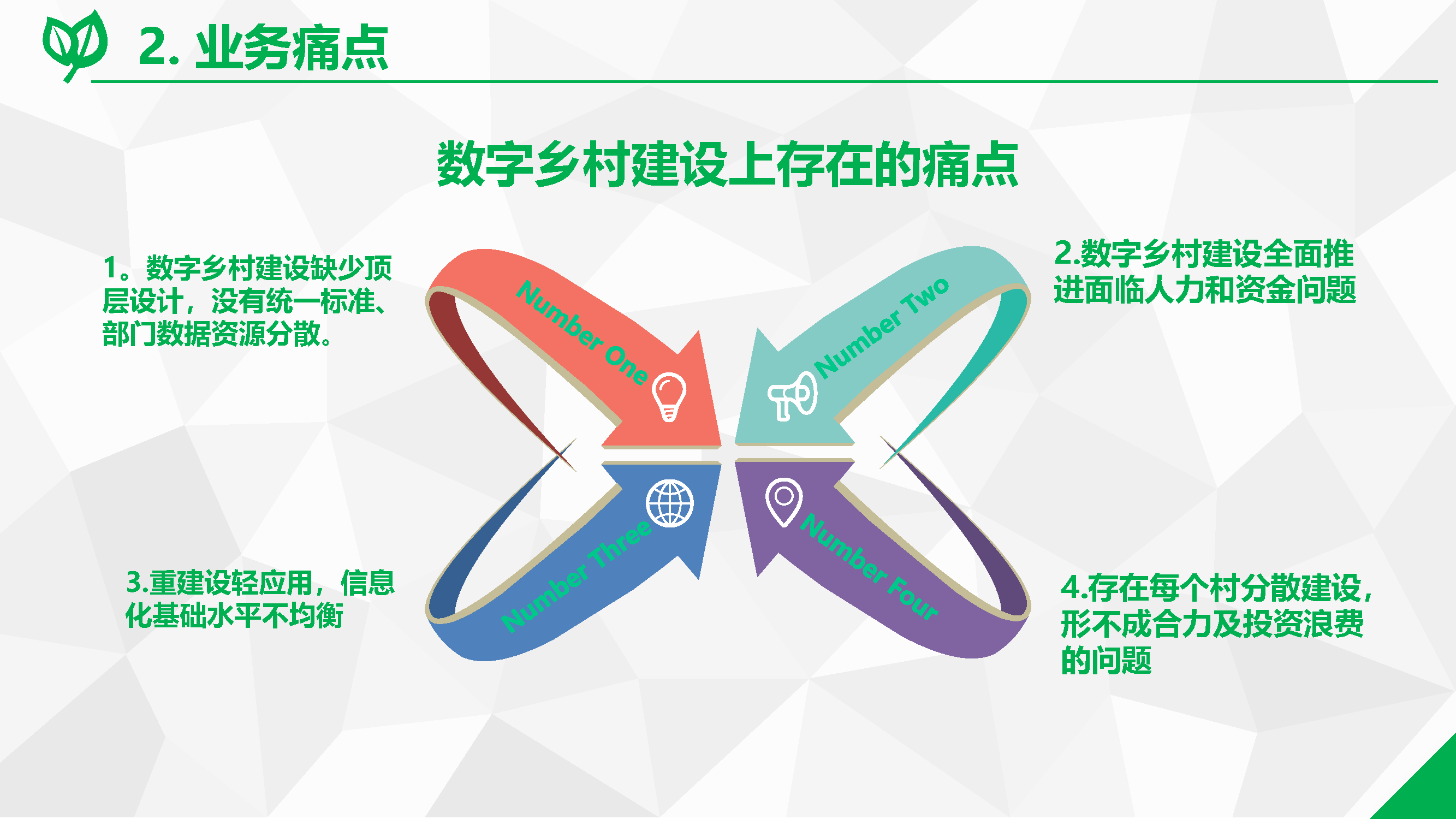 中央网信办等七部门联合印发《关于开展国家数字乡村试点工作的通知》提出完善“三农”信息服务体系,“三农”问题目的是要解决农民增收、农业发展、农村稳定,三农”问题关系到国民素质、经济发展,也关系到社会稳定、国家富强、民族复兴。聚焦农民生产生活实际需求,将“三农”信息服务体系建设落到实处,为村民提供精细化的村务管理,人性化的惠民服务,专业化的农事生产,生态化的村容村貌,新时代的乡风文明。